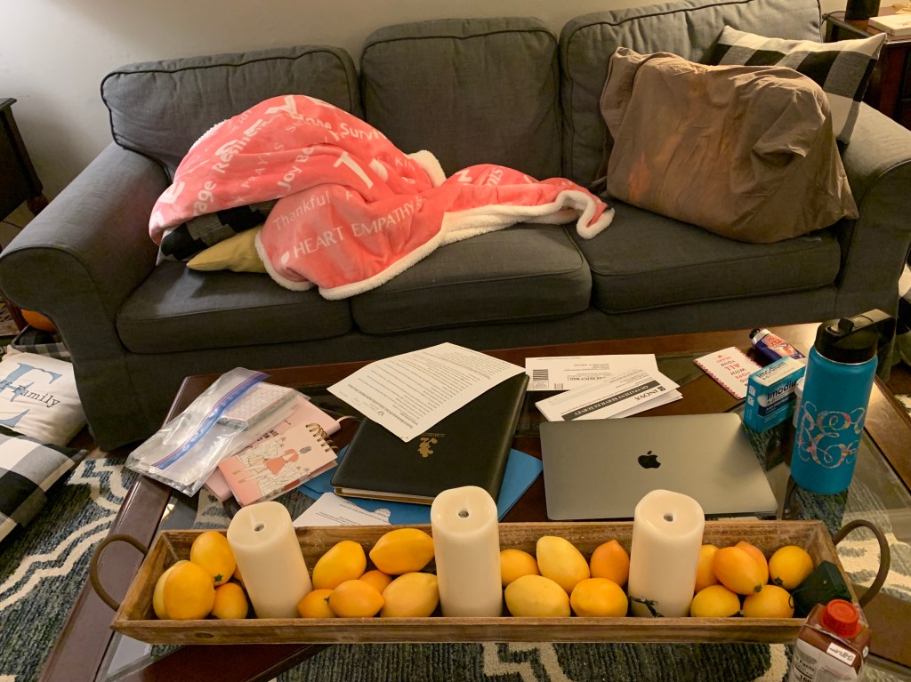 Chris was able to wait with me for both of these procedures because the hospital was still allowing one person in with each patient. Chemo was yesterday they allowed Chris to come back with me because it was my first time, but until the coronavirus is under control no one will be able to go back with me the following times. I was just so happy they allowed him in the first time. Now I know what to expect and what to bring. I am a chronic over packer. So, I brought entertainment, snacks, a pillow, and blanket. It looked like I was checking in for the weekend!